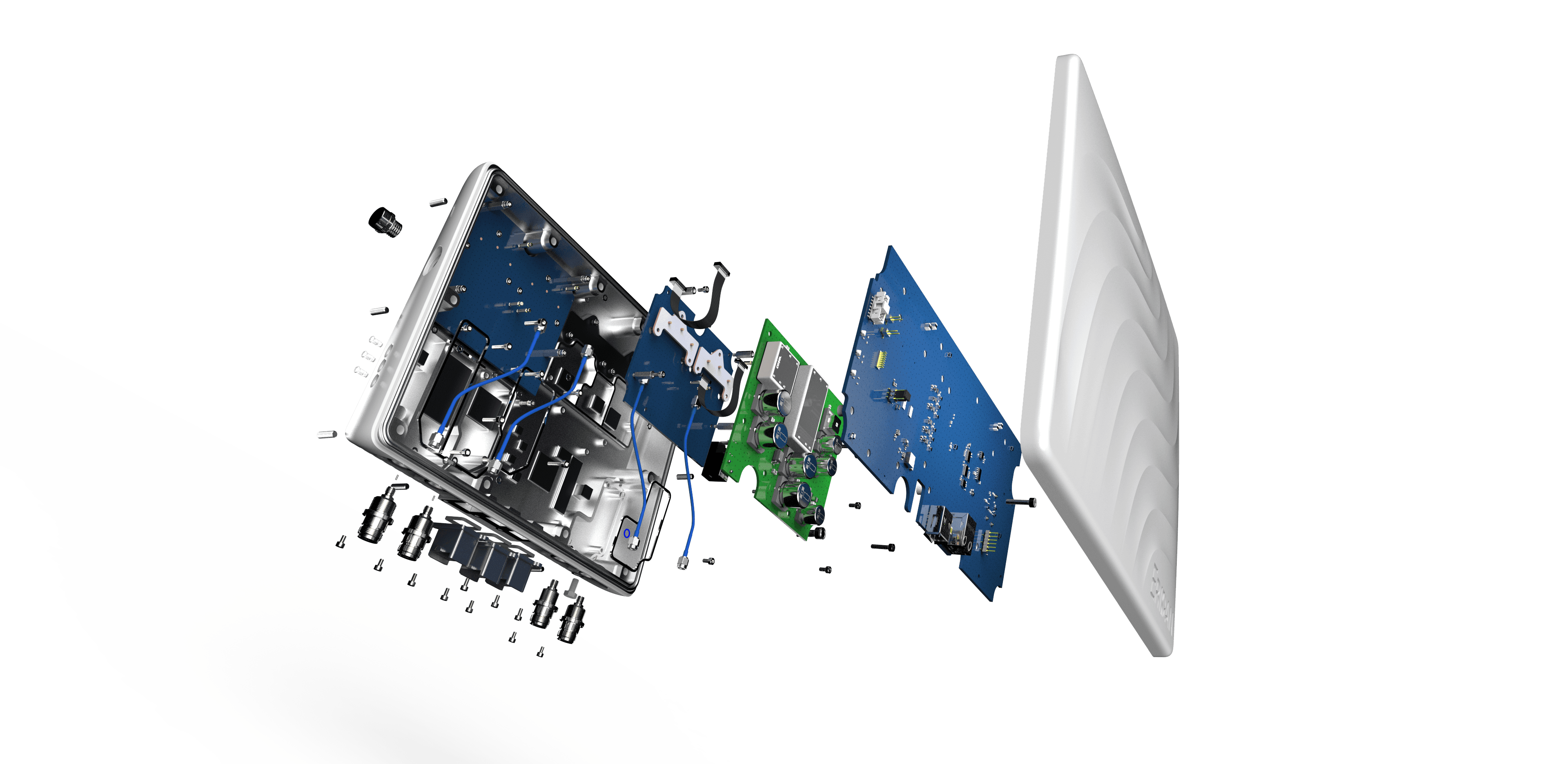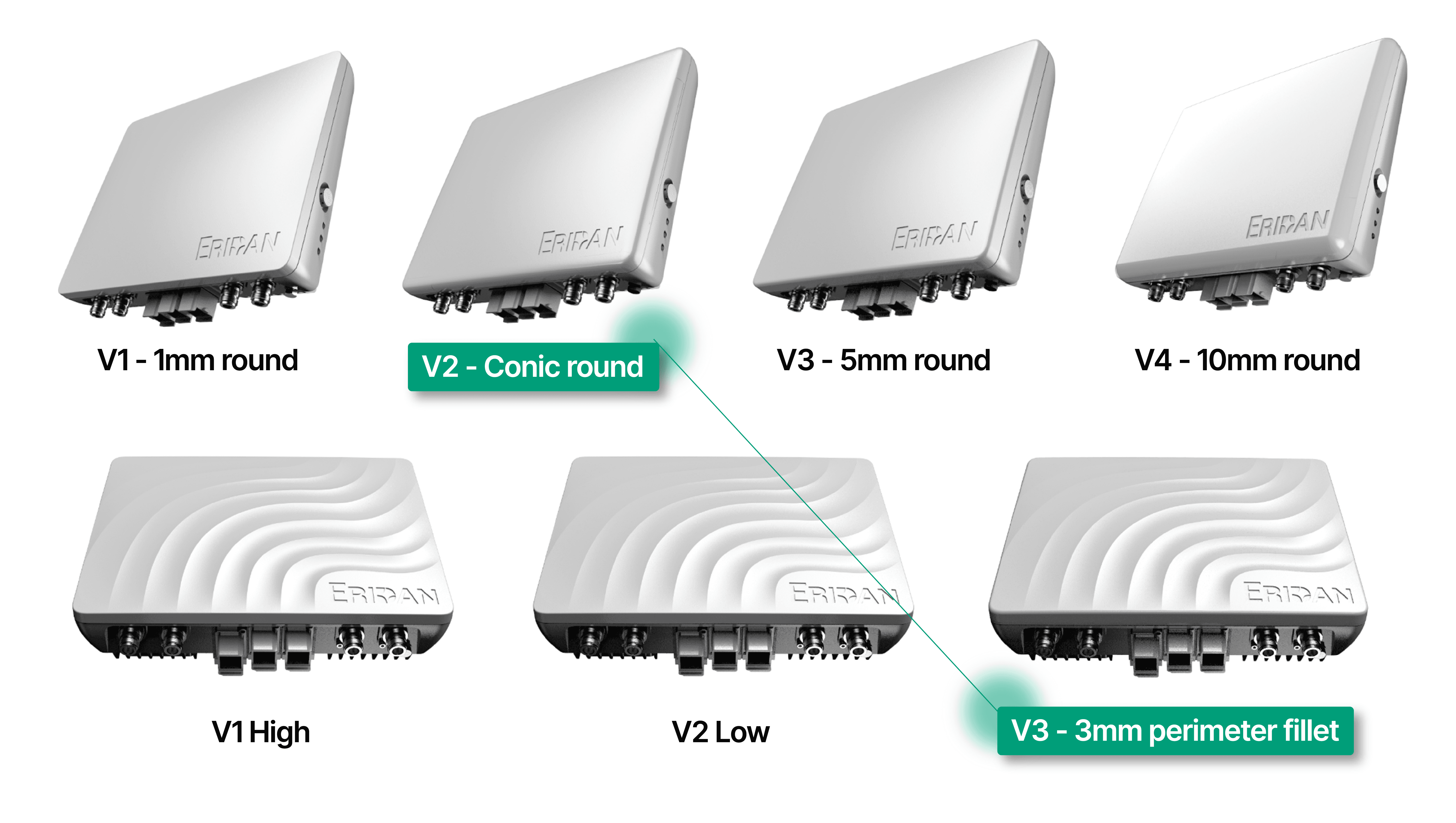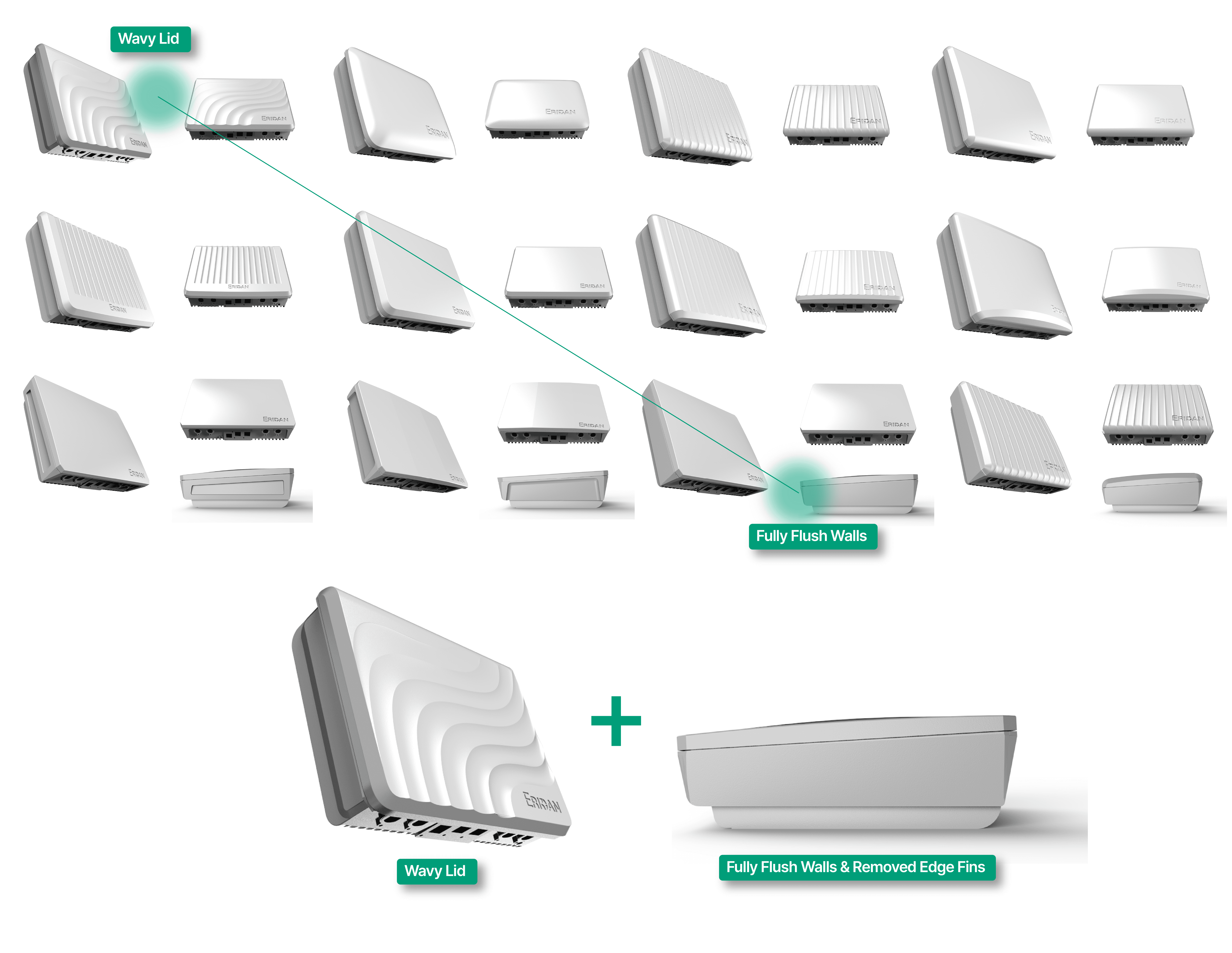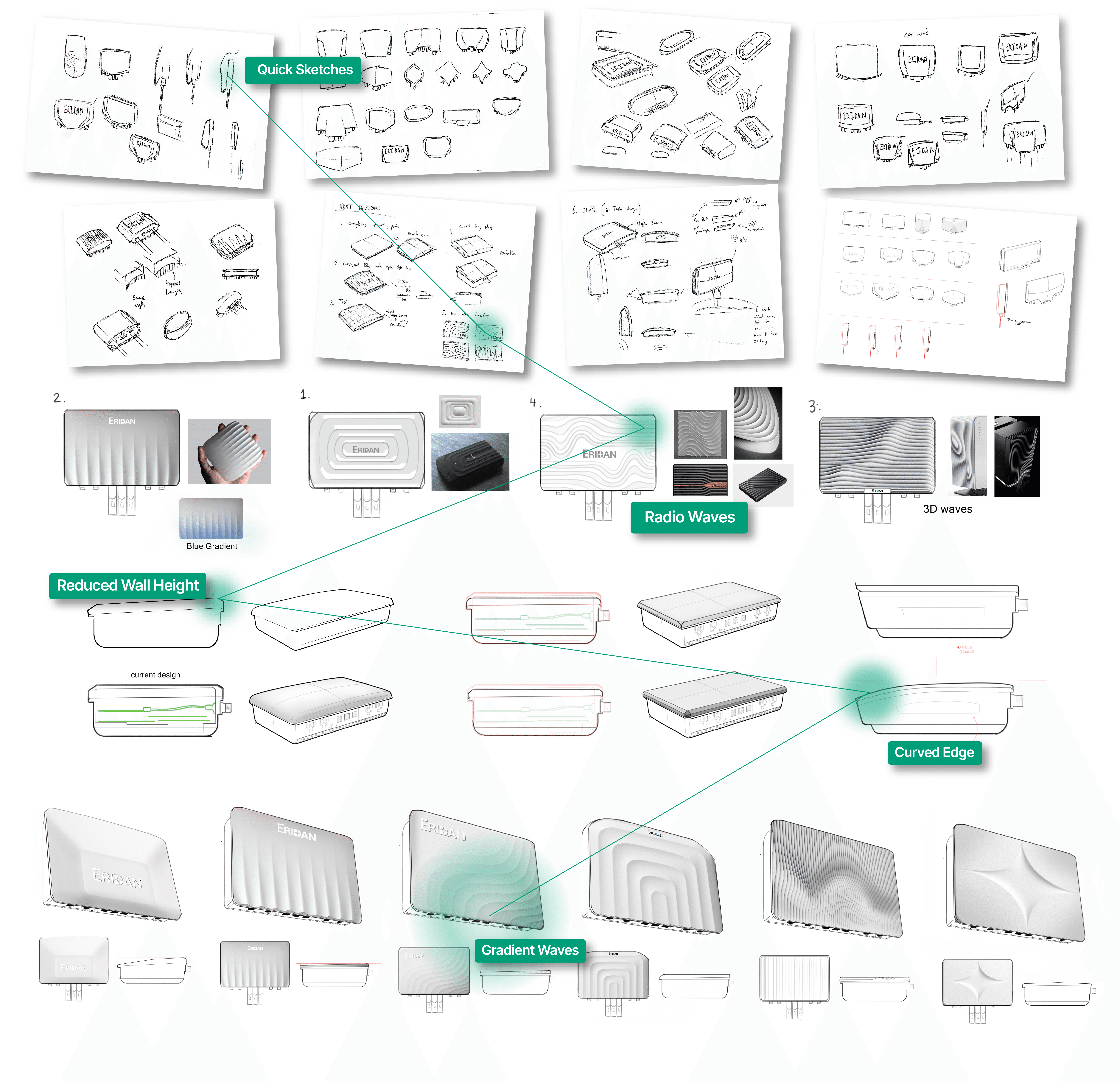 Guided by a directive from the C-suite to establish a premium product identity, the design process began within strict constraints. A defined rectangular form and specified white finish. Rather than limiting the outcome, these constraints became a framework for innovation. I explored how controlled surface variation, rhythm, and detailing could introduce dynamism and distinction. Wave and rib patterns emerged as a key direction, serving both as a visual expression of radio transmission and as functional elements that enhance thermal performance.